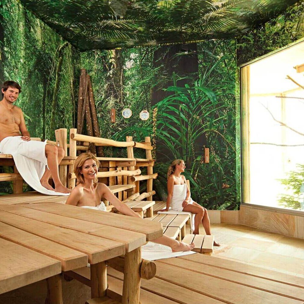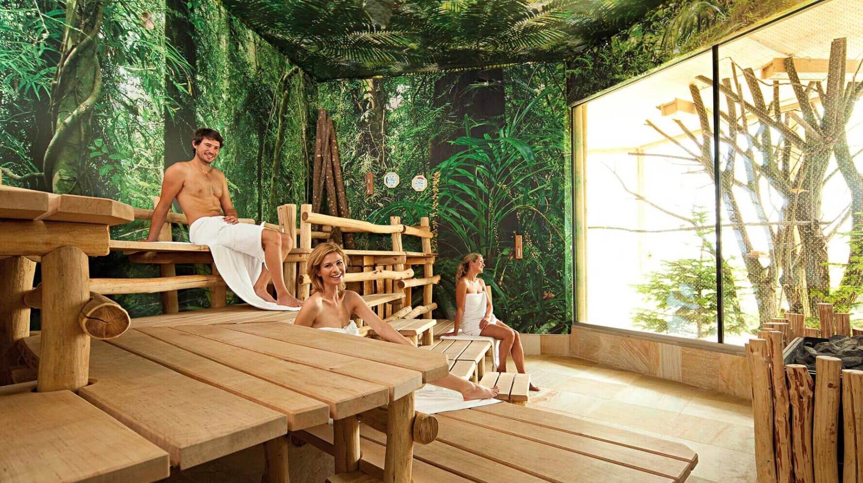 Gönnen Sie sich erholsame Momente in elf unterschiedlichen Saunen und einem Dampfbad nach dem Schwimmen im Wasser. Entspannen Sie bei einem Saunaaufguss oder beobachten Sie die Koi bei ihrem emsigen Treiben, während Sie die exotischen Highlights der Region genießen. Relaxen Sie auf der Sonnenterrasse und unter echten Palmen, ermöglichen Sie Entspannung in ruhiger Atmosphäre.