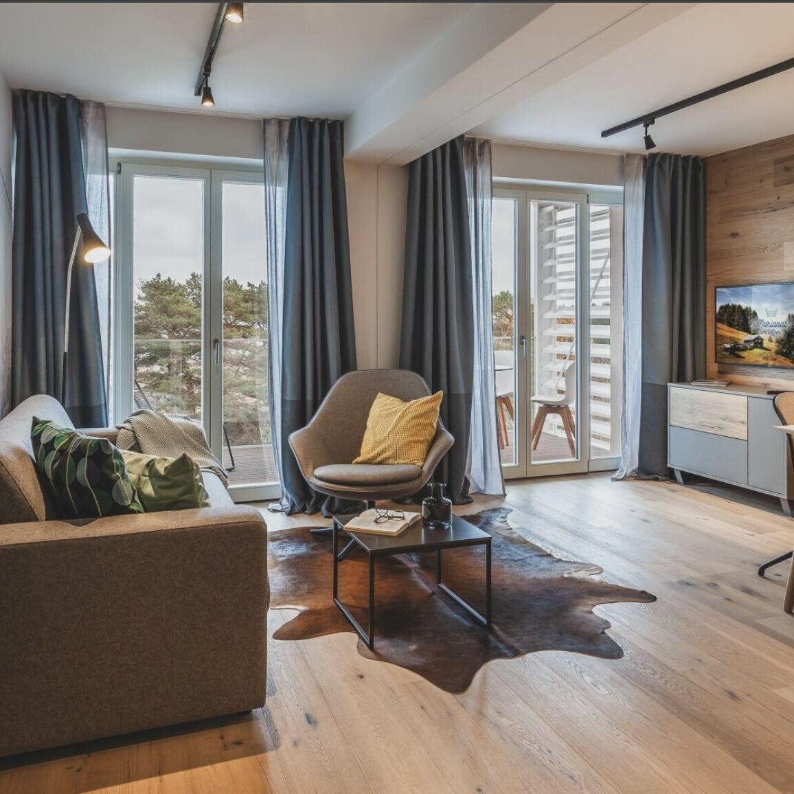 | Kategorie & Stil | Modernes Ferienresort mit Apartments/„Hütten“ statt klassischem Hotel – maritim-alpiner Look, familienfreundlich |