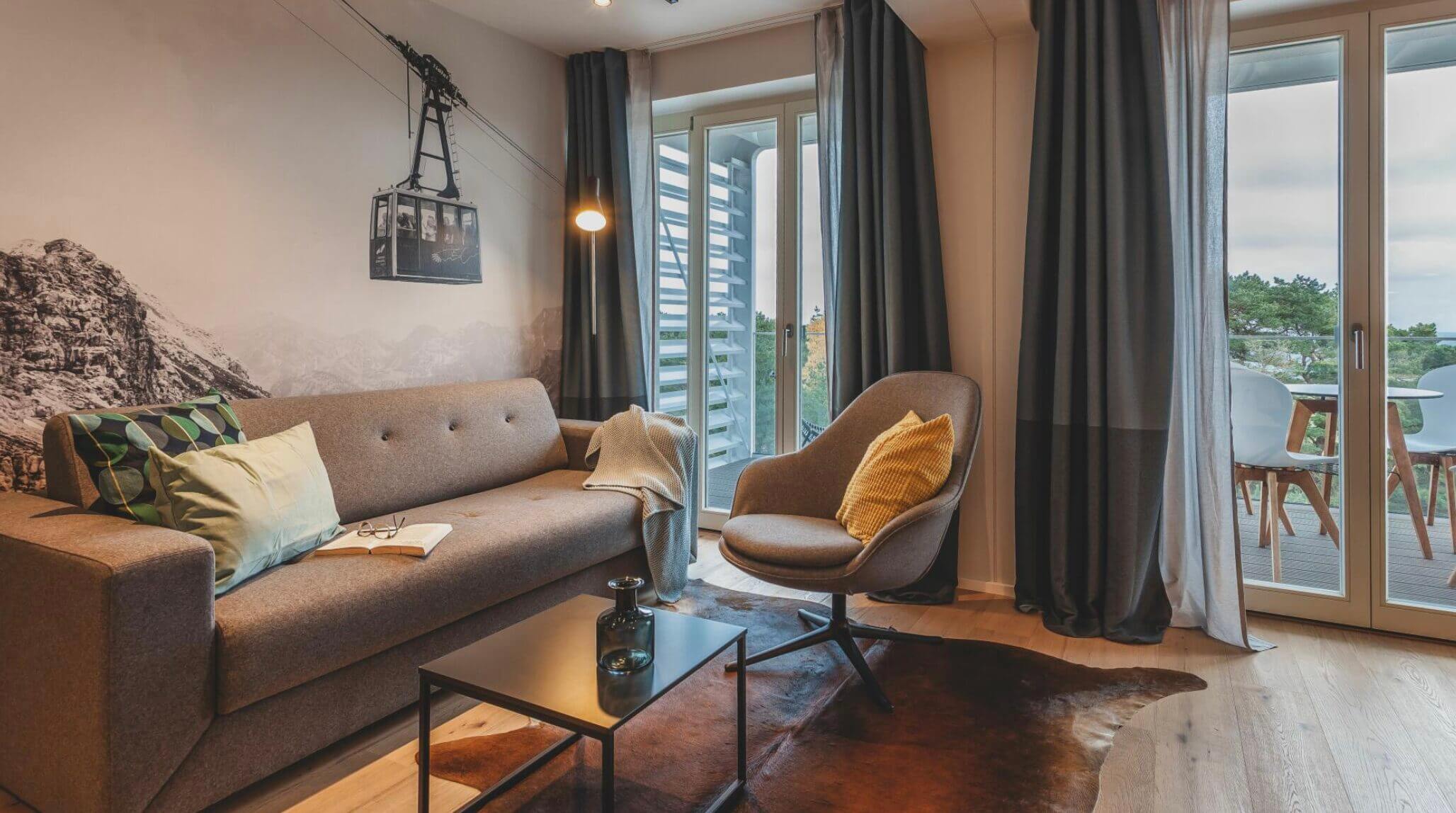| Kategorie & Stil | Modernes Ferienresort mit Apartments/„Hütten“ statt klassischem Hotel – maritim-alpiner Look, familienfreundlich |