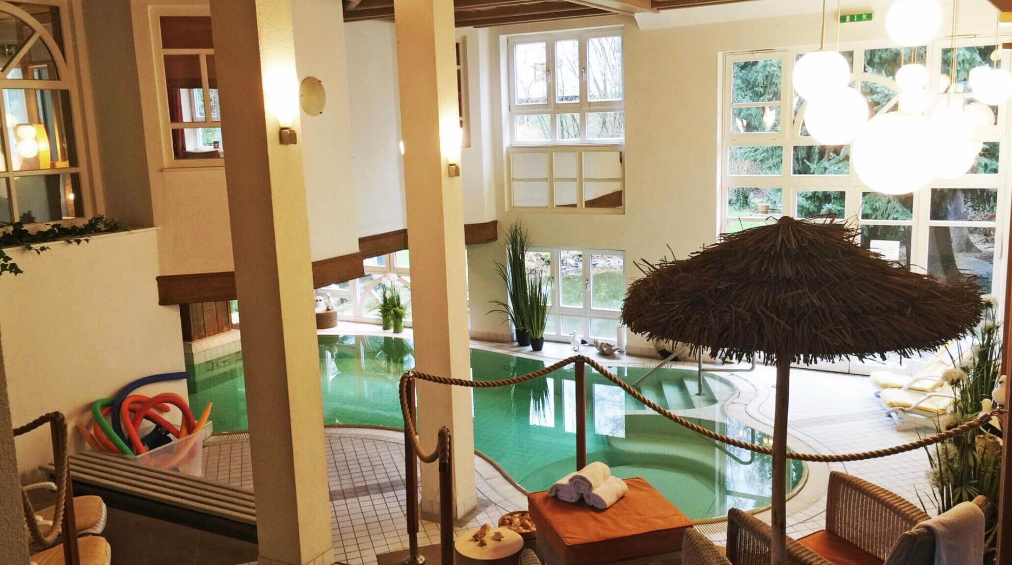 Die Oase im 4-Sterne-Wellnesshotel in Uslar ist eine Wellness-Oase mit vielen Entspannungsmöglichkeiten auf einer Fläche von 500 m². Vom Spa-Bereich, in dem Sie sich eine entspannende Massage gönnen können, über die Sauna, in der Sie sich nach einem langen Tag wunderbar entspannen können, bis zum Pool können Sie sich in Ihrem Urlaub so richtig austoben.