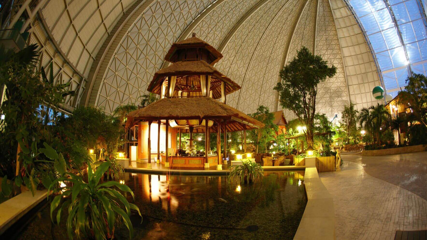 Tropical Islands Resort ist Europas größte tropische Urlaubswelt, die ganzjährig tropisches Klima, Palmen, Sandstrand und eine Vielzahl von Wasserattraktionen bietet. Die Erlebnis-Landschaft beinhaltet den weltweit größten Indoor-Regenwald mit über 50 000 Pflanzen, einen 200 Meter langen Sandstrand, den Whitewater River, Wasserrutschen, Übernachtungsmöglichkeiten, Wellness-Einrichtungen und vieles mehr.